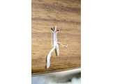 白く細長いからだのおなか側に、黒い5つほどの点が並びます。